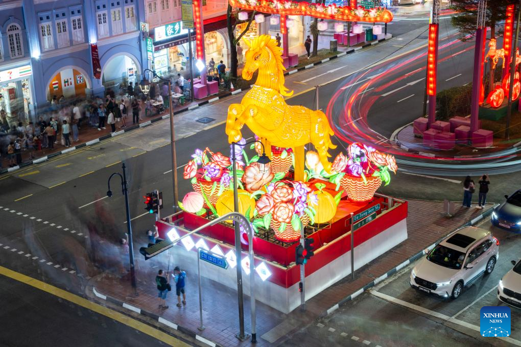 A lantern inspired by the Chinese zodiac horse is pictured in Singapore on Jan. 30, 2026. Lanterns in celebration of the upcoming Chinese New Year were officially lit up in Singapore's Chinatown on Friday evening. [Photo/Xinhua]