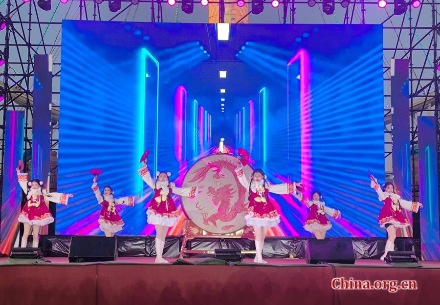 Dancers perform onstage in front of a dynamic digital backdrop at Shijingshan Amusement Park in Beijing, Feb. 7, 2026. [Photo by Xu Xiaoxuan/China.org.cn]