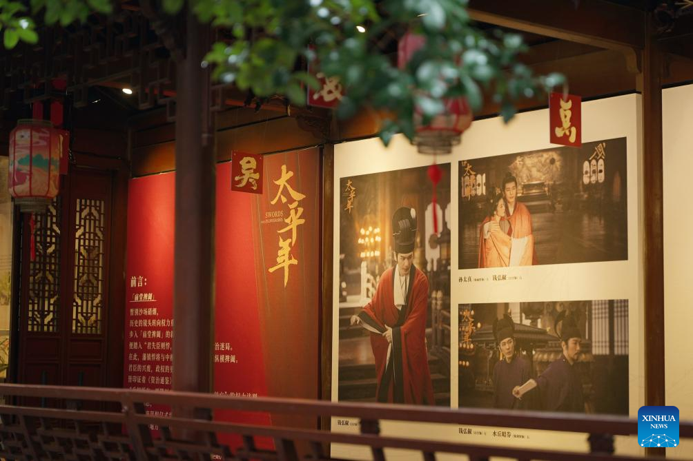 This photo taken on Dec. 31, 2025 shows an exhibition featuring the historical epic TV series "Swords into Plowshares" in Hangzhou, east China's Zhejiang Province. [Photo/Xinhua]