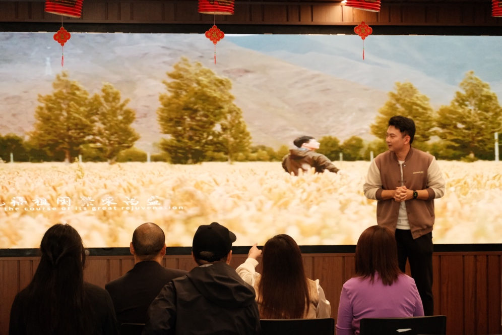Local residents watch a video presentation accompanying the mini photo exhibition in San Jose, California, Feb. 8, 2026. [Photo provided to China.org.cn]