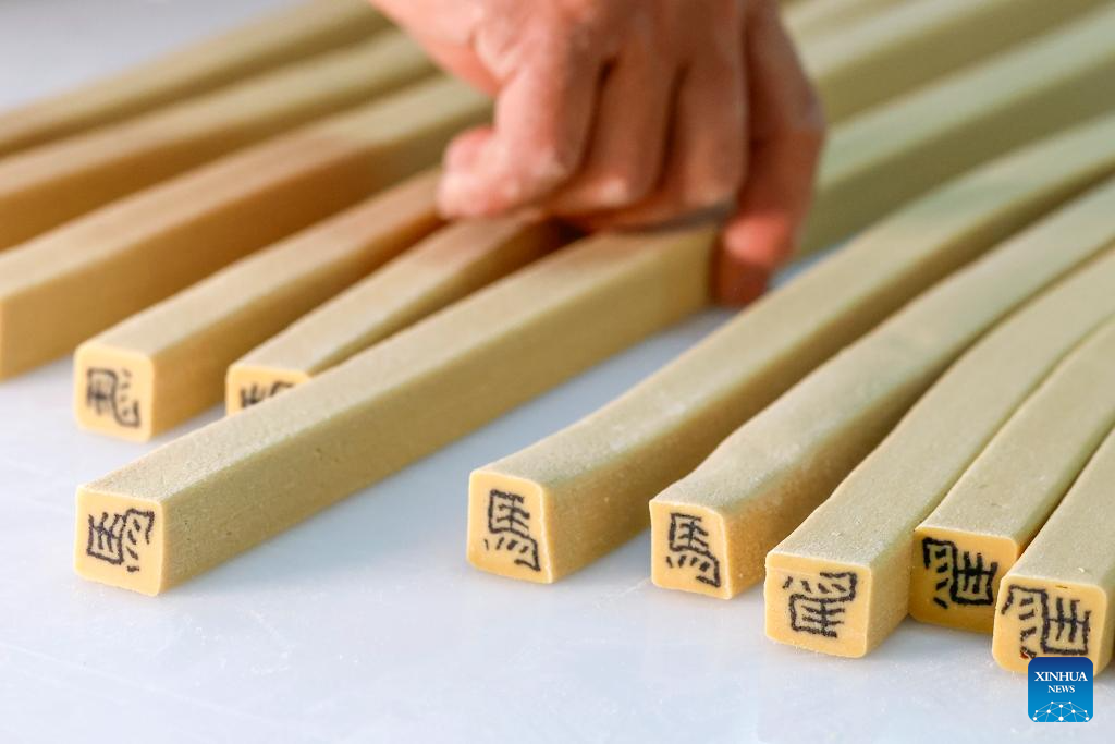 A staff member makes character-inlaid candies in Qimen County of Huangshan City, east China's Anhui Province, Jan. 13, 2026.