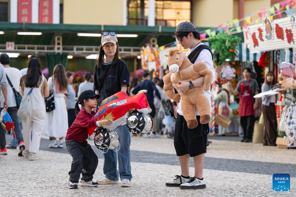 People have fun at a Spring Festival market in Macao, south China, Feb. 15, 2026. [Photo/Xinhua]