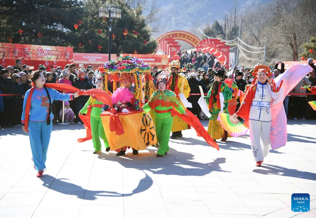 Artists stage folk performances in Pinggu District of Beijing, capital of China, Feb. 17, 2026. This year's Spring Festival saw a surge of visitors eager to experience local cuisine, rich history and vibrant folk performances. (Xinhua/Ren Chao)
