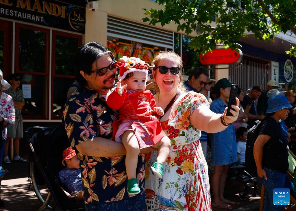 Visitors take a selfie during an event celebrating the Spring Festival in Canberra, Australia, Feb. 21, 2026. [Photo/Xinhua]