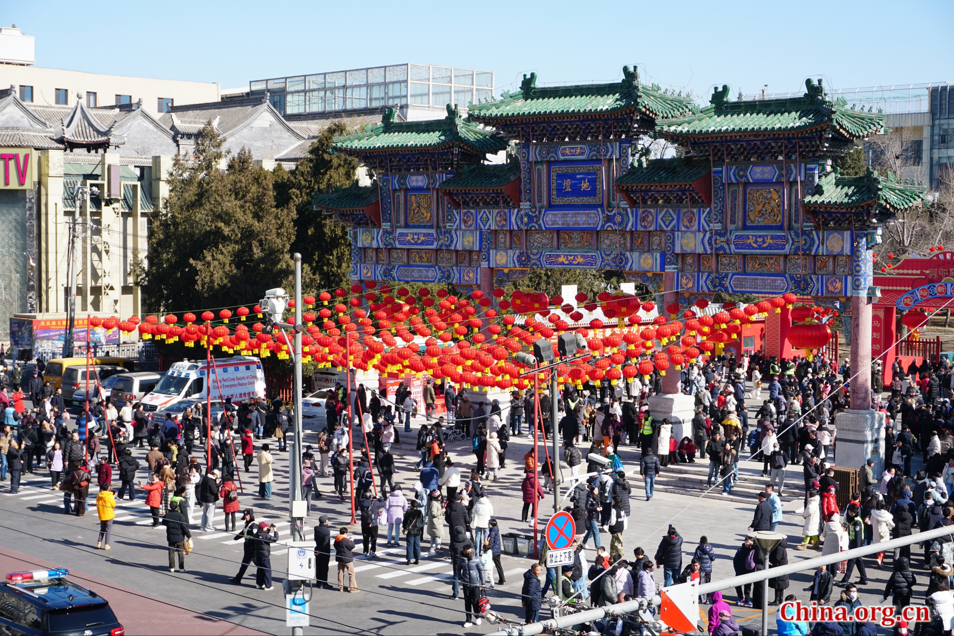 Crowds gather outside Ditan Park for the 38th Ditan Park Temple Fair in Beijing, Feb. 17, 2026. [Photo by Li Congrong/China.org.cn]