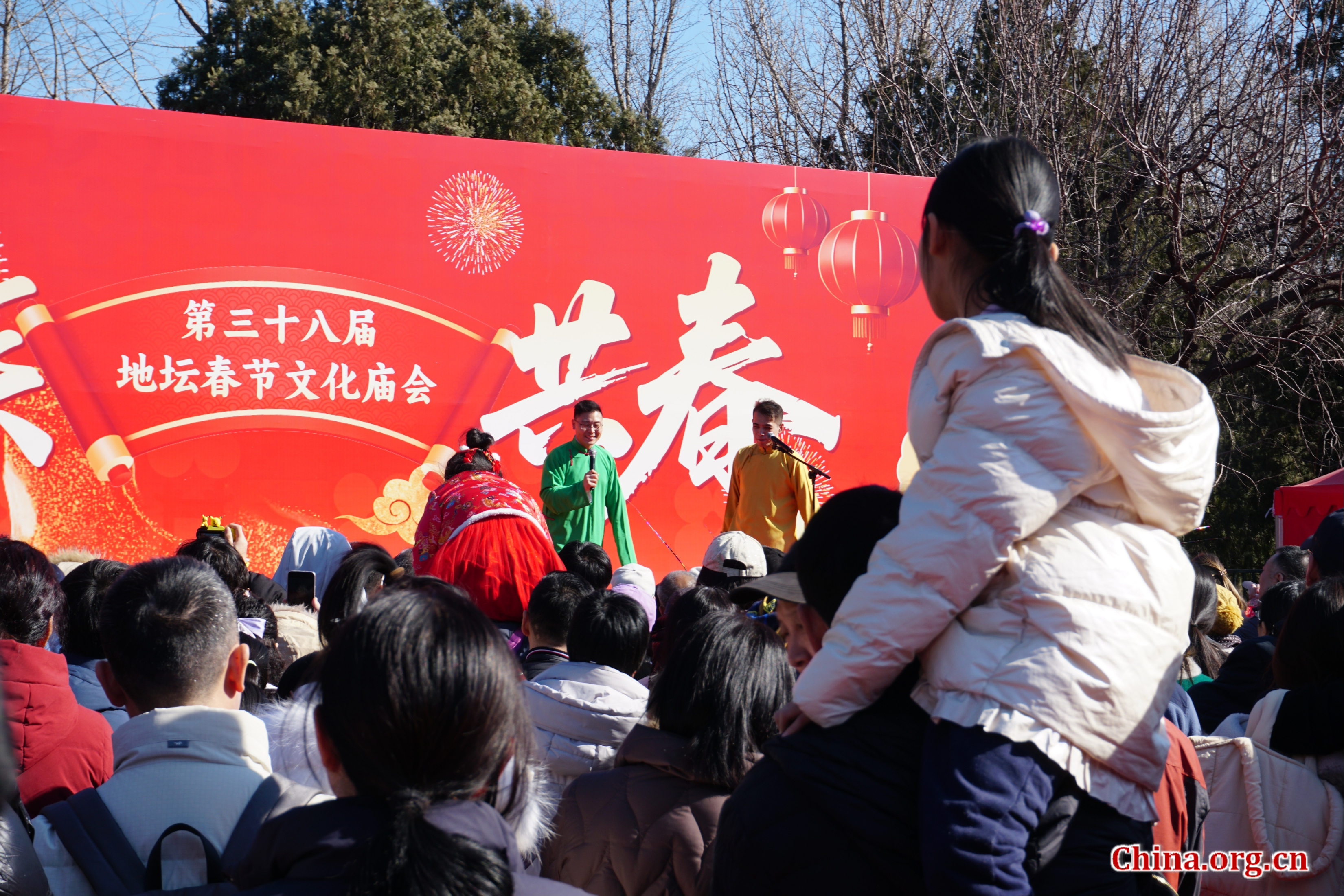 Crowds watch a crosstalk performance at the 38th Ditan Park Temple Fair in Beijing, Feb. 17, 2026. [Photo by Li Congrong/China.org.cn]