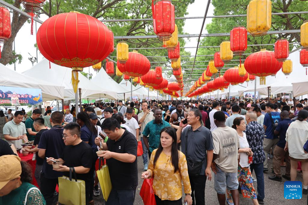 People visit a food bazaar during an event in celebration of the Chinese Lantern Festival at the forecourt of Ghana's Parliament House in Accra, Ghana, March 1, 2026. [Photo/Xinhua]