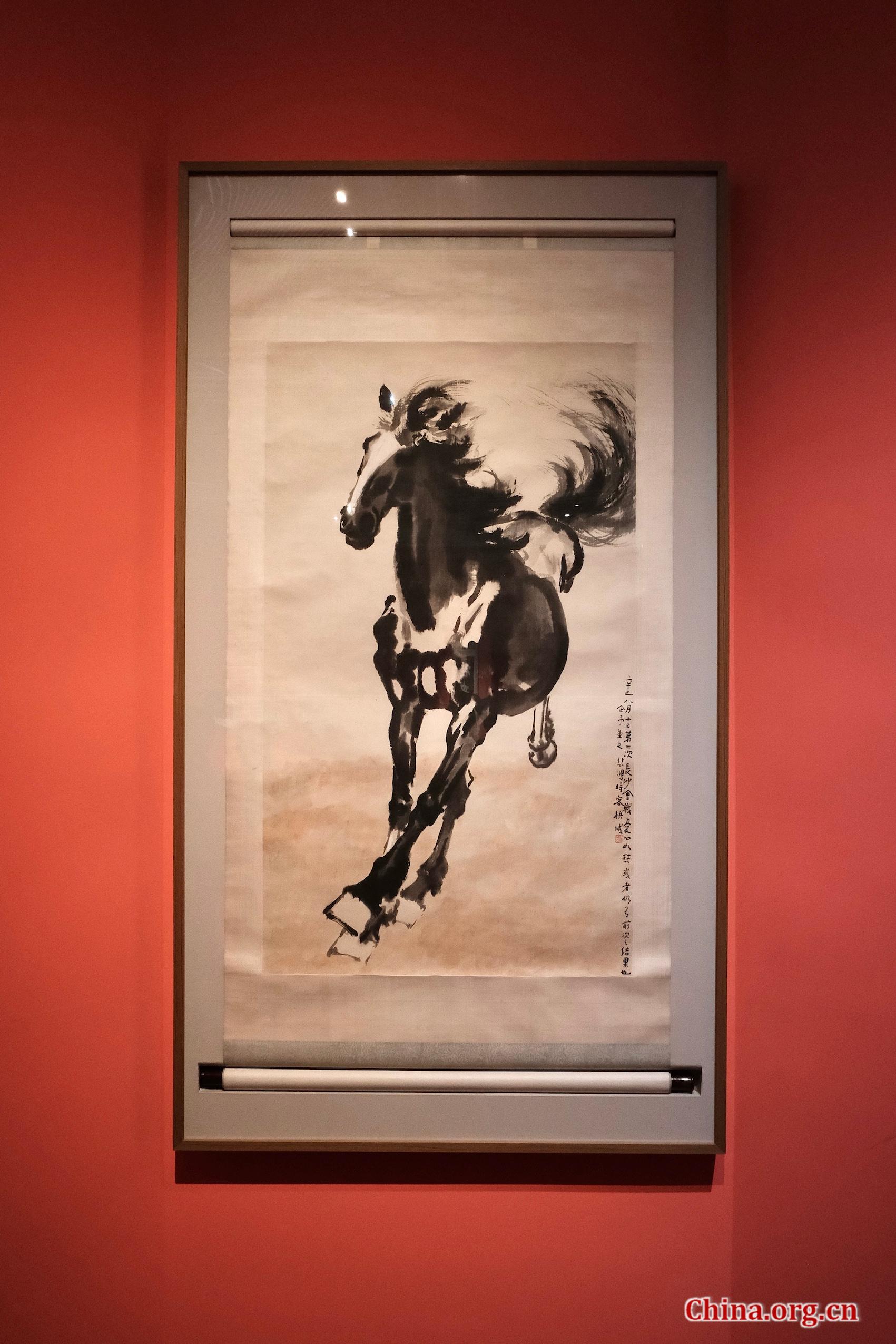 A painting of a galloping horse by Xu Beihong on display at the Guardian Art Center, Beijing, March 7, 2026. [Photo by Liao Jiaxin/China.org.cn]