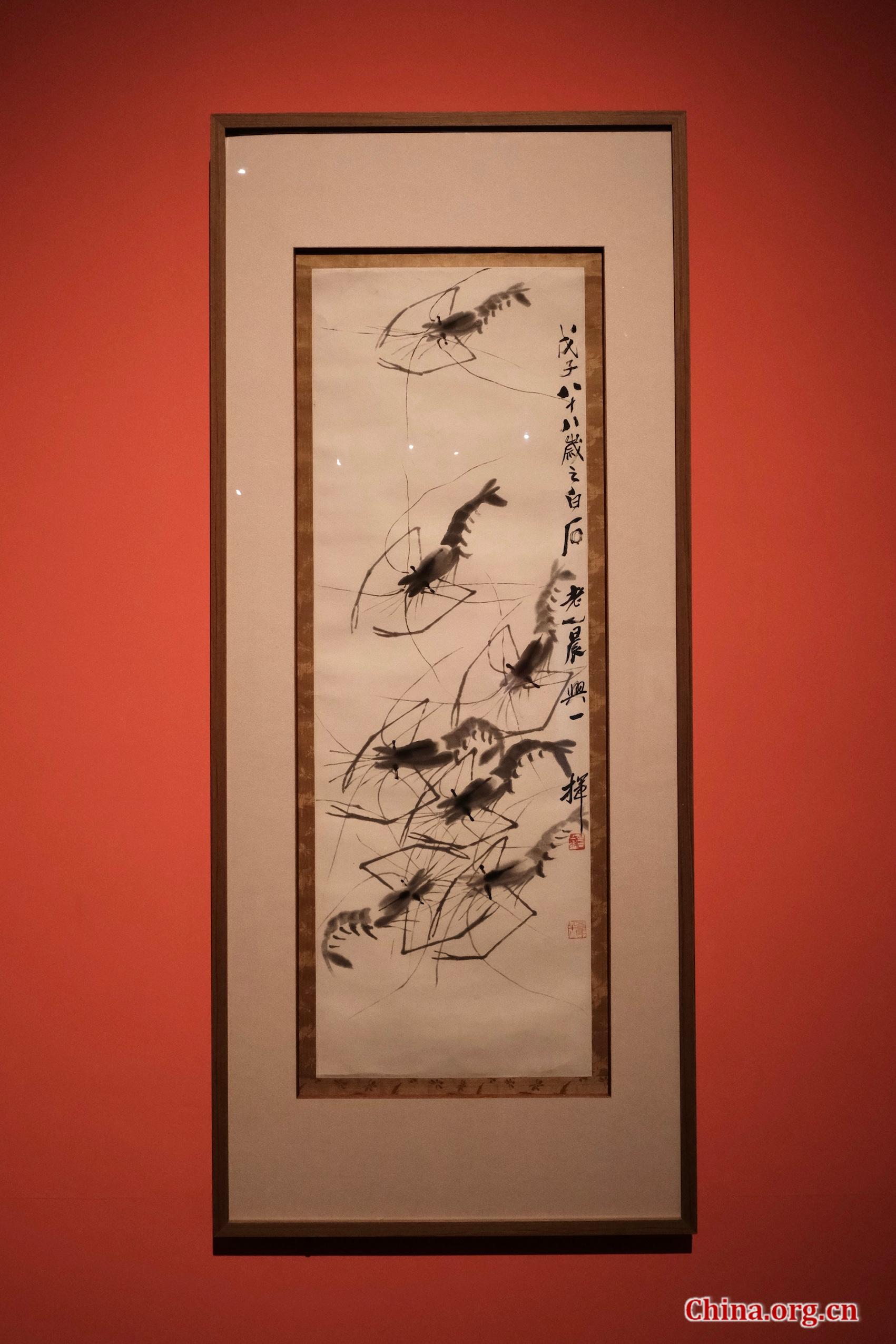 A painting of shrimps by Qi Baishi on display at the Guardian Art Center, Beijing, March 7, 2026. [Photo by Liao Jiaxin/China.org.cn]