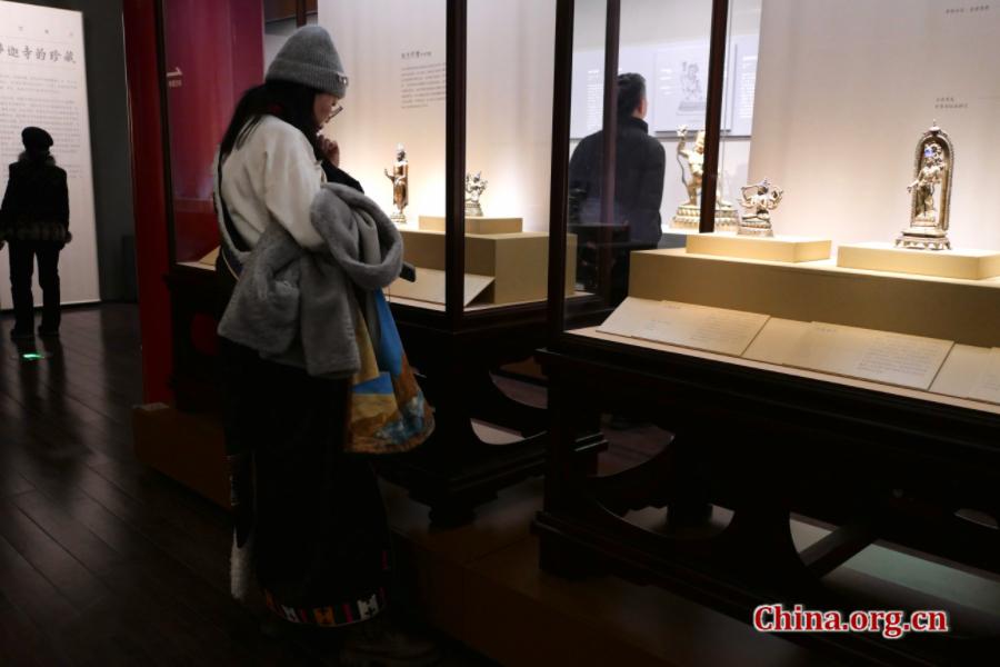 A visitor dressed in traditional Xizang clothing views the exhibits at the Palace Museum in Beijing, March 5, 2026. [Photo by Yang Chuanli/China.org.cn]