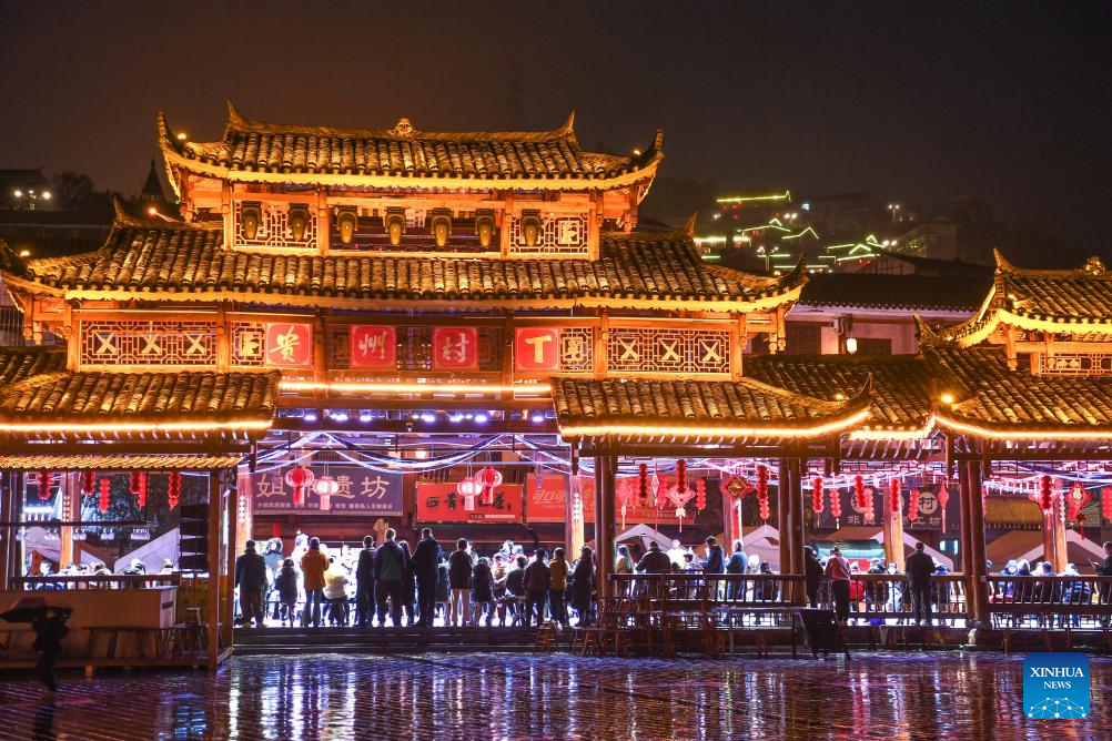 People watch the "Village T" fashion show in Kaili, Qiandongnan Miao and Dong Autonomous Prefecture, southwest China's Guizhou Province, on March 8, 2026. Embroiderers from Qiandongnan Miao and Dong Autonomous Prefecture participated in the "Village T" fashion show to showcase colorful ethnic costumes. [Photo/Xinhua]