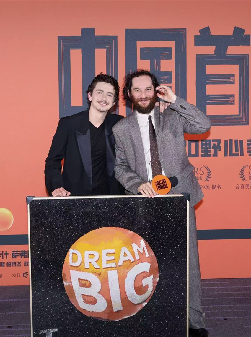 Chalamet and director Josh Safdie attended the film's Chinese premiere Tuesday night at an IMAX theater in Beijing. It was Chalamet's first visit to China. The post-screening event was livestreamed to 29 IMAX theaters nationwide, drawing thousands of fans. On the IMAX screen, every close-up and explosive swing of Chalamet's paddle drew audiences into the high-stakes world of Mauser's ambition.