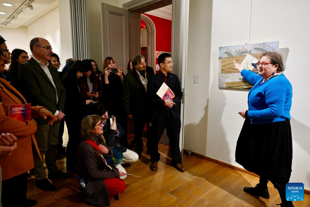 In celebration of the 55th anniversary of the establishment of diplomatic relations between China and Belgium, the art exhibition "Artists in Dialogue: Across Generations" is held at the China Cultural Center in Brussels from March 25 to May 1. The exhibition showcases 17 works by nine artists from China and Belgium, alongside paintings by 223 young artists. [Photo/Xinhua]