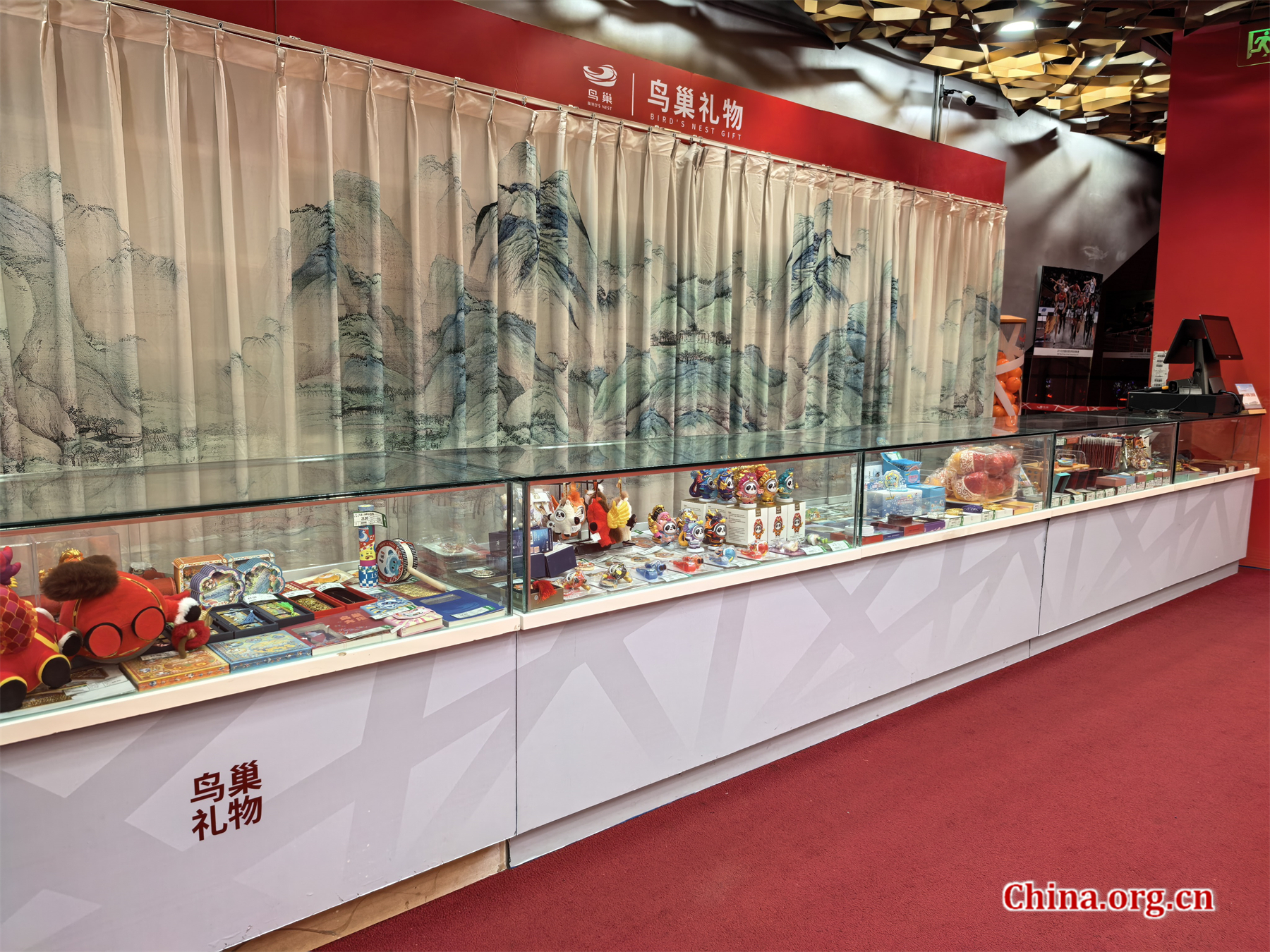 A souvenir showcase at the National Stadium in Beijing on March 27. [Photo by Li Congrong/China.org.cn]