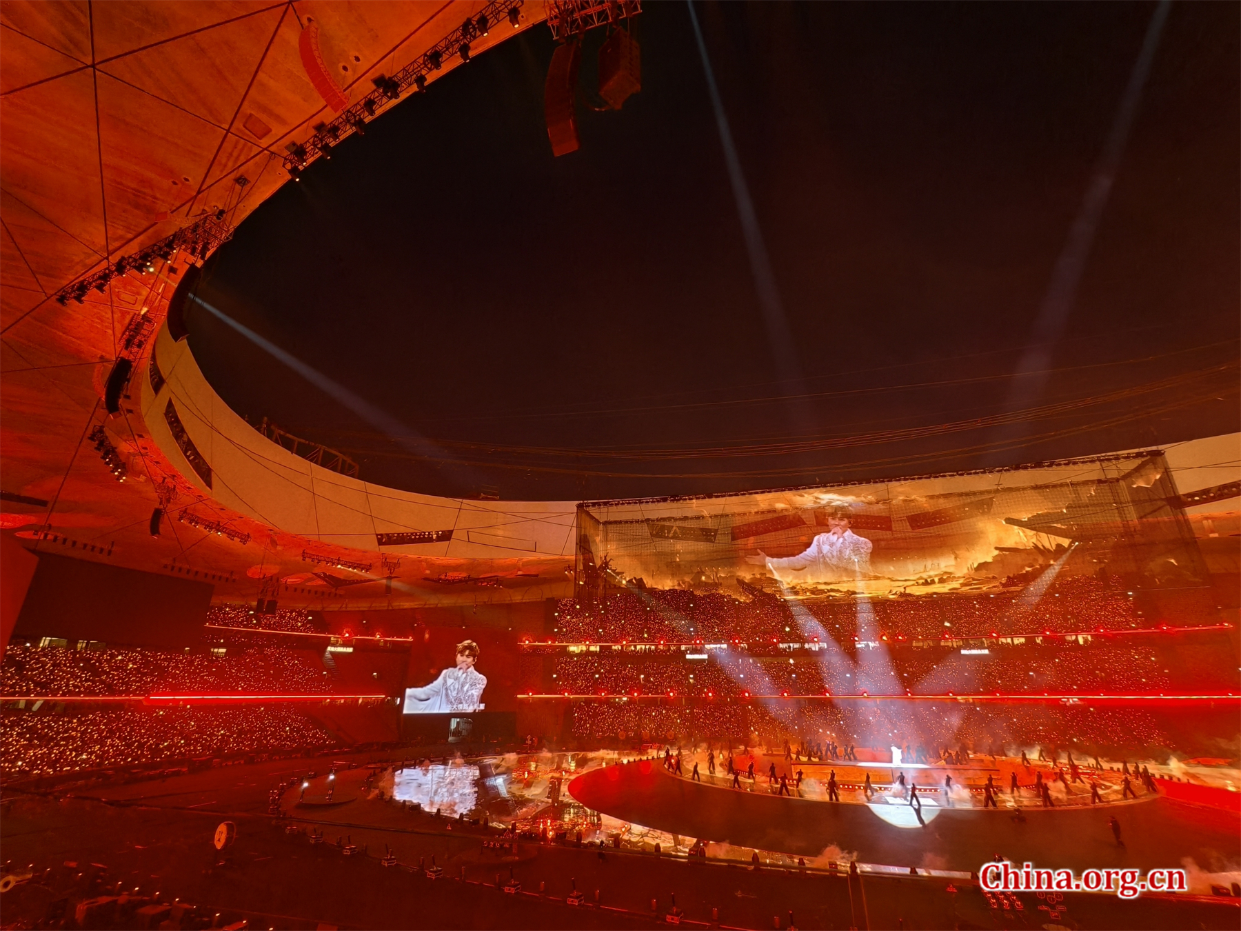 Chinese singer Jason Zhang performs the opening night of his "FUTURE • LIVE — Leave For 1982" world tour at the National Stadium in Beijing on March 27. Zhang is scheduled for an unprecedented 16-show run at the venue until April 19. [Photo by Gong Yingchun/China.org.cn]