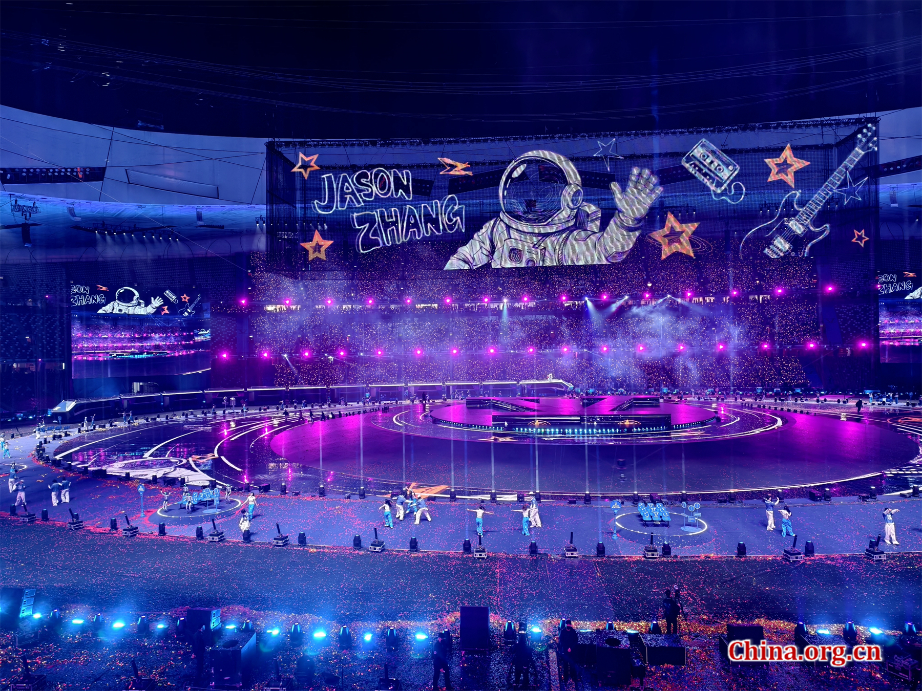 Chinese singer Jason Zhang performs the opening night of his "FUTURE • LIVE — Leave For 1982" world tour at the National Stadium in Beijing on March 27. Zhang is scheduled for an unprecedented 16-show run at the venue until April 19. [Photo by Gong Yingchun/China.org.cn]