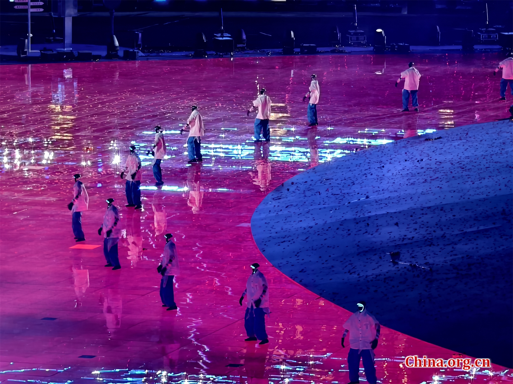 Robotic "dancers" take the stage at Beijing's National Stadium during the kickoff of Jason Zhang's "FUTURE • LIVE — Leave For 1982" world tour on March 27. [Photo by Gong Yingchun/China.org.cn]