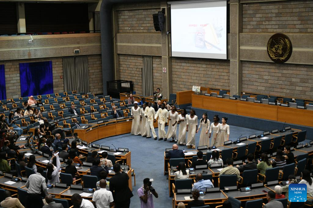 Artists stage a performance during the United Nations Chinese Language Day at the United Nations Office at Nairobi (UNON) in Kenya, April 13, 2026. The 17th United Nations Chinese Language Day was celebrated on Monday in Nairobi, the Kenyan capital, with a call to foster dialogue among different cultures and civilizations (Xinhua/Liu Qiong)