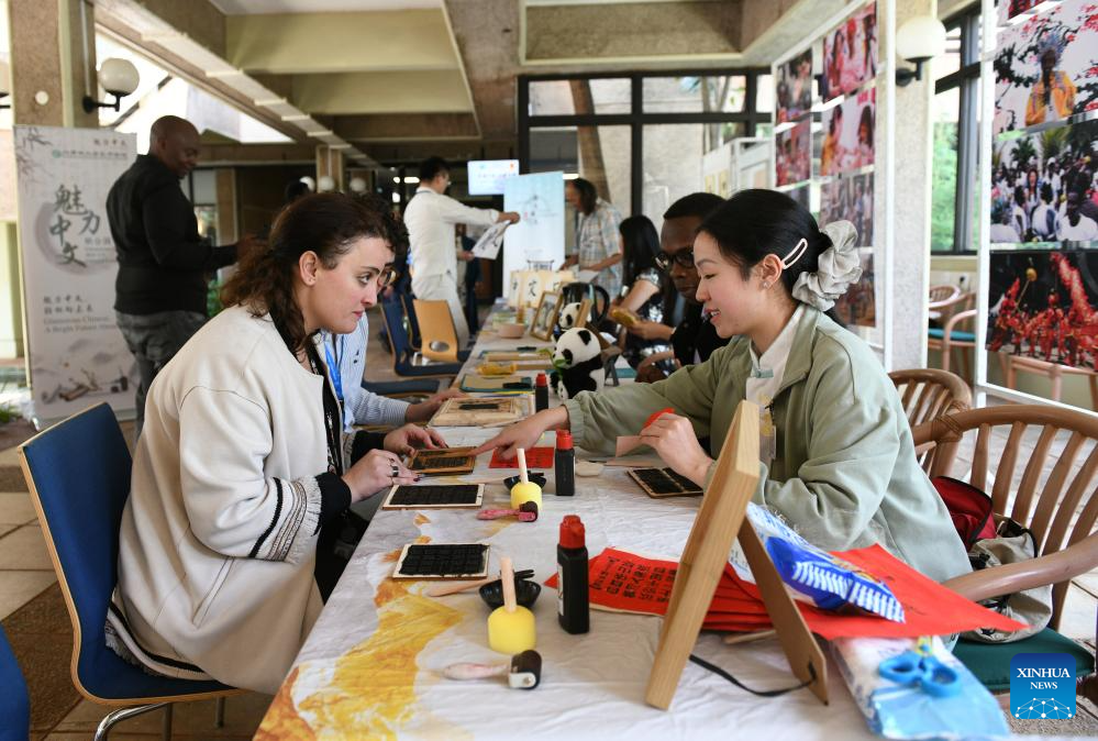 People experience Chinese cultural activities during the United Nations Chinese Language Day at the United Nations Office at Nairobi (UNON) in Kenya, April 13, 2026. The 17th United Nations Chinese Language Day was celebrated on Monday in Nairobi, the Kenyan capital, with a call to foster dialogue among different cultures and civilizations. (Xinhua/Liu Qiong)