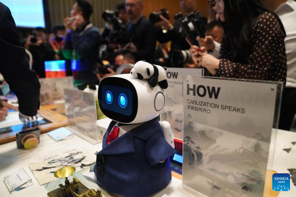 This photo taken on April 13, 2026 shows an educational robot displayed during a celebration marking the UN Chinese Language Day at the UN headquarters in New York. A celebration titled Chinese Language Shining Civilizations was held at the UN headquarters in New York to mark the UN Chinese Language Day on Monday. [Photo/Xinhua]