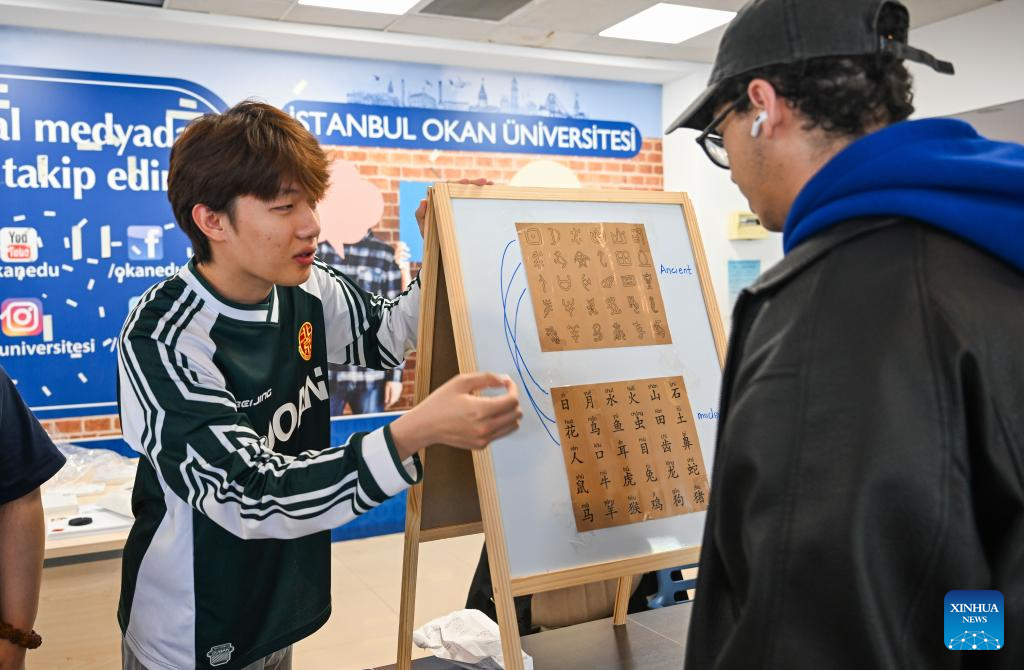 A university student takes part in a Chinese characters recognition game at Okan University in Istanbul, Türkiye, on April 20, 2026. The Confucius Institute at Okan University in Istanbul, Türkiye, hosted a variety of activities to celebrate the International Chinese Language Day on Monday. [Photo/Xinhua]