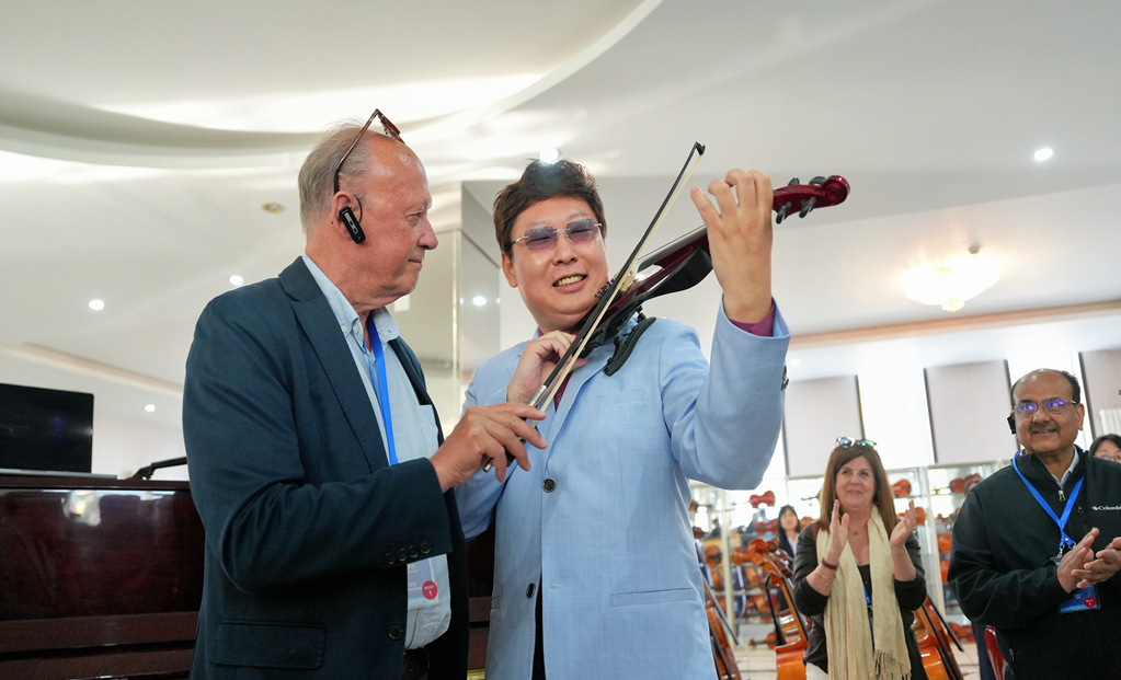 Minister Counsellor Huub Buise of the Embassy of the Netherlands in China interacts with Chinese Violinist Zhang Shaobo at the event. [photo provided to China.org.cn]