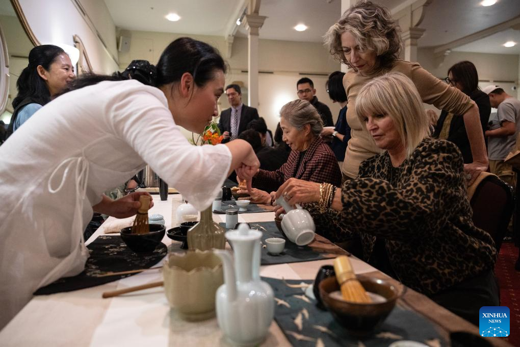 Organized by the China Cultural Center in Auckland, the event, which also featured a concert by the Amber Quartet, integrated Chinese tea culture with Western classical music, as it opened with tea tasting, traditional tea preparation, tea appreciation and storytelling about tea culture, creating an elegant and harmonious atmosphere. (Photo by Wu Jiaxiang/Xinhua)