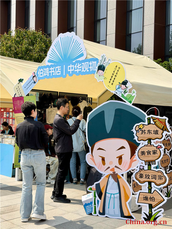 A cutout of celebrated Chinese poet Su Shi, also known as Su Dongpo, is displayed at a booth during the China Publishing Group Reading Week Cultural Market in Beijing, April 23, 2026. [Photo by Liu Caiyi/China.org.cn]