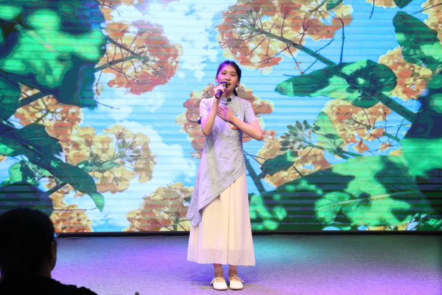 A student competes during a Chinese language recitation competition at the China Cultural Center in Yangon, Myanmar, April 26, 2026.(Photo by Soe Pyae Tun/Xinhua)