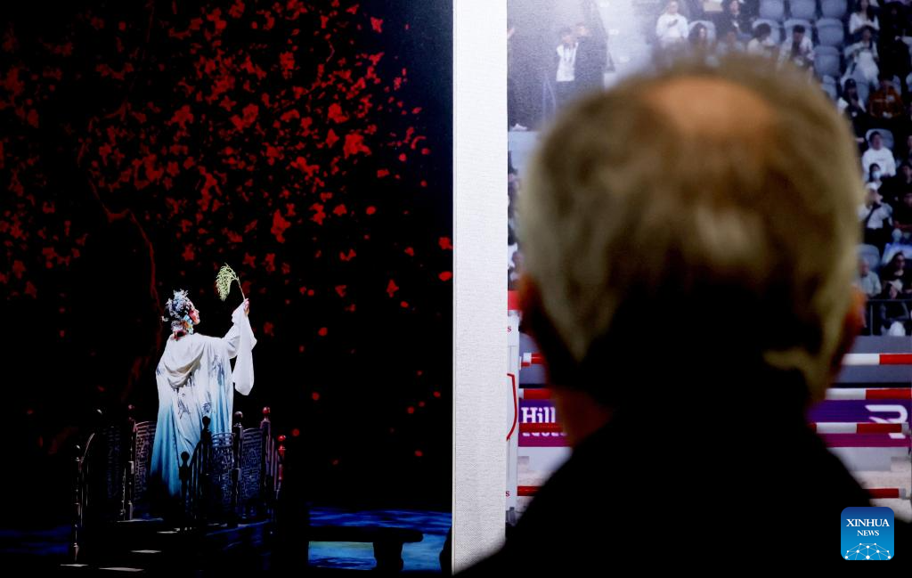 A visitor views photos exhibited during a Shanghai city promotion event in London, Britain, on April 24, 2026.