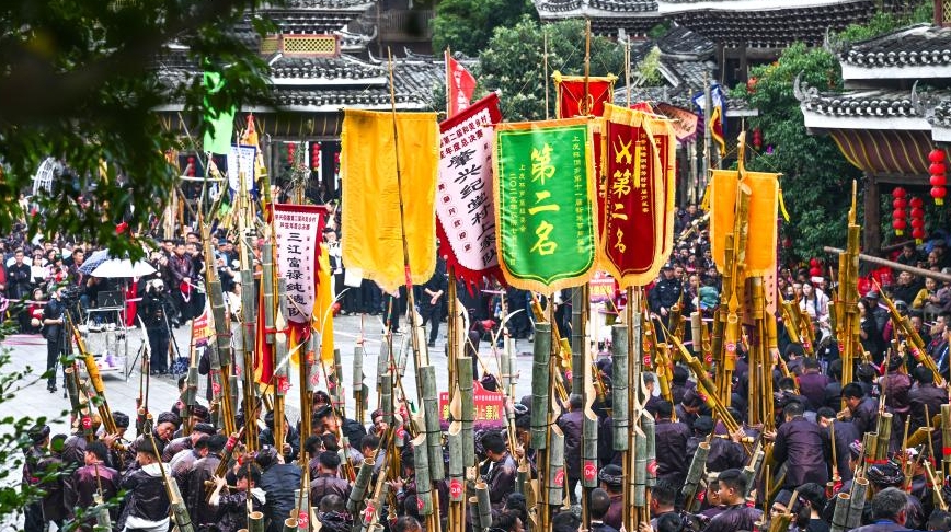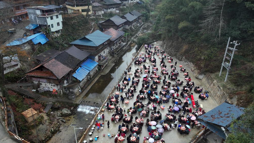 To the rhythm of lusheng woodwind pipes and the scent of sticky rice cakes, a village in southwest China's Guizhou Province celebrated its annual Dong New Year festival over the weekend -- an event that has become a gateway for global visitors.