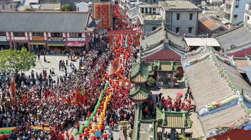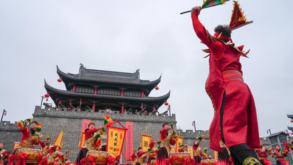 Performers perform during a temple fair in Wuxi, east China's Jiangsu Province, Feb. 25, 2026.