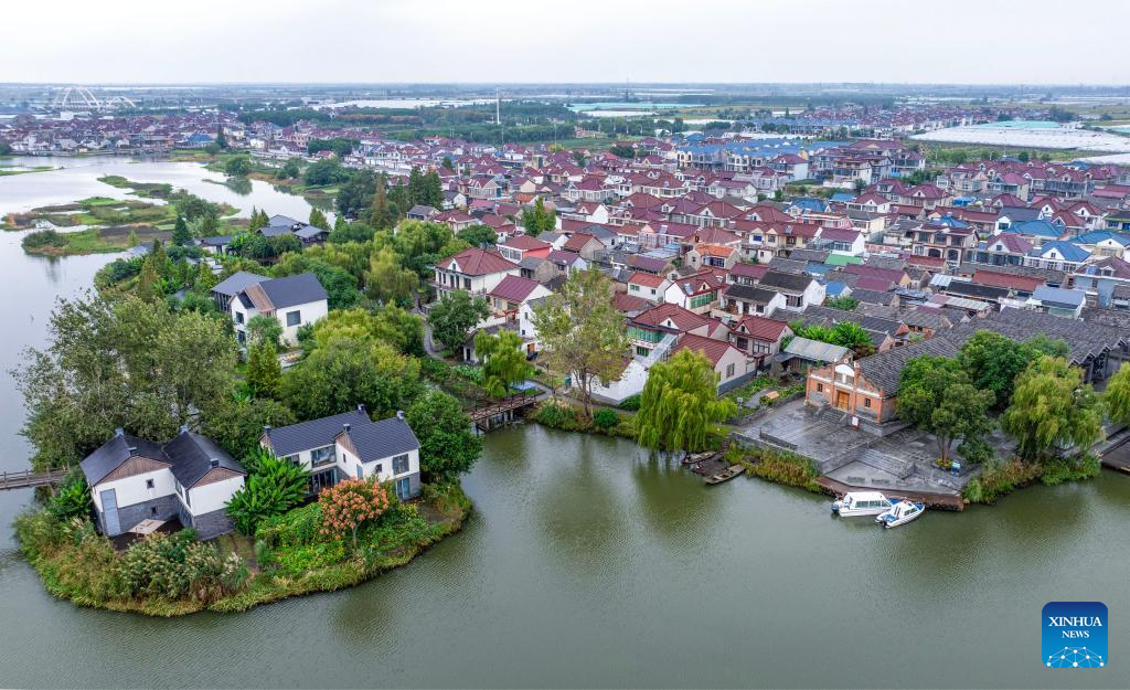 An aerial drone photo taken on Oct. 17, 2025 shows the Dongluo Village in Taizhou City, east China's Jiangsu Province. [Photo/Xinhua]