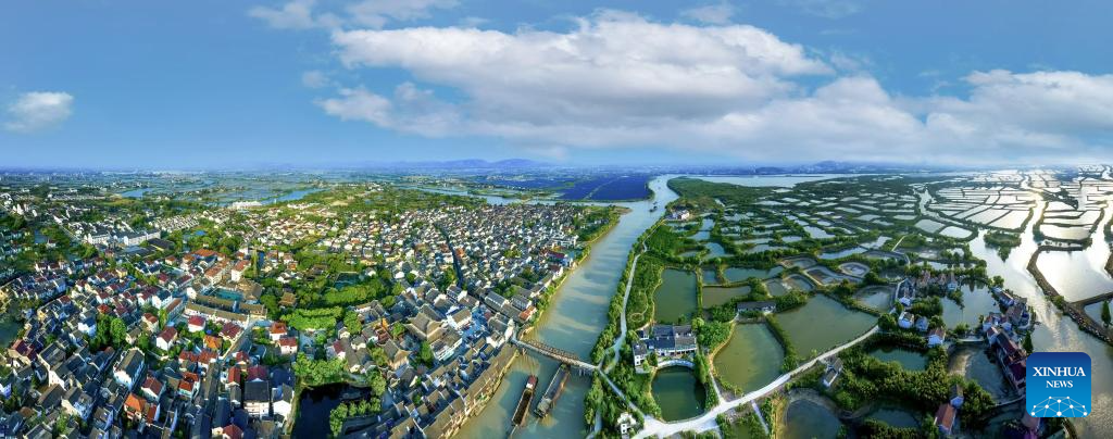 An aerial drone photo taken in August of 2024 shows the panoramic view of Digang Village in Huzhou City, east China's Zhejiang Province. [Photo/Xinhua]