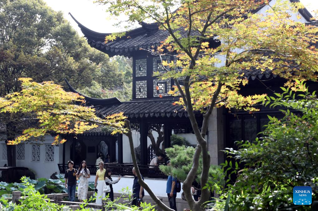 Tourists enjoy the scenery at Lingering Garden in Suzhou, east China's Jiangsu Province, Oct. 17, 2025. (Photo by Hang Xingwei/Xinhua)