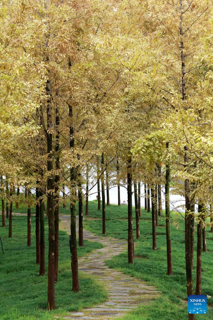 This photo taken on Oct. 17, 2025 shows the autumn scenery at Muyu Island in Zigui County, central China's Hubei Province. (Photo by Wang Gang/Xinhua)