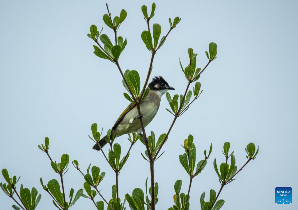 A bird perches on branch of a tree in Qionghai City, south China's Hainan Province, Oct. 23, 2025. (Photo by Meng Zhongde/Xinhua)