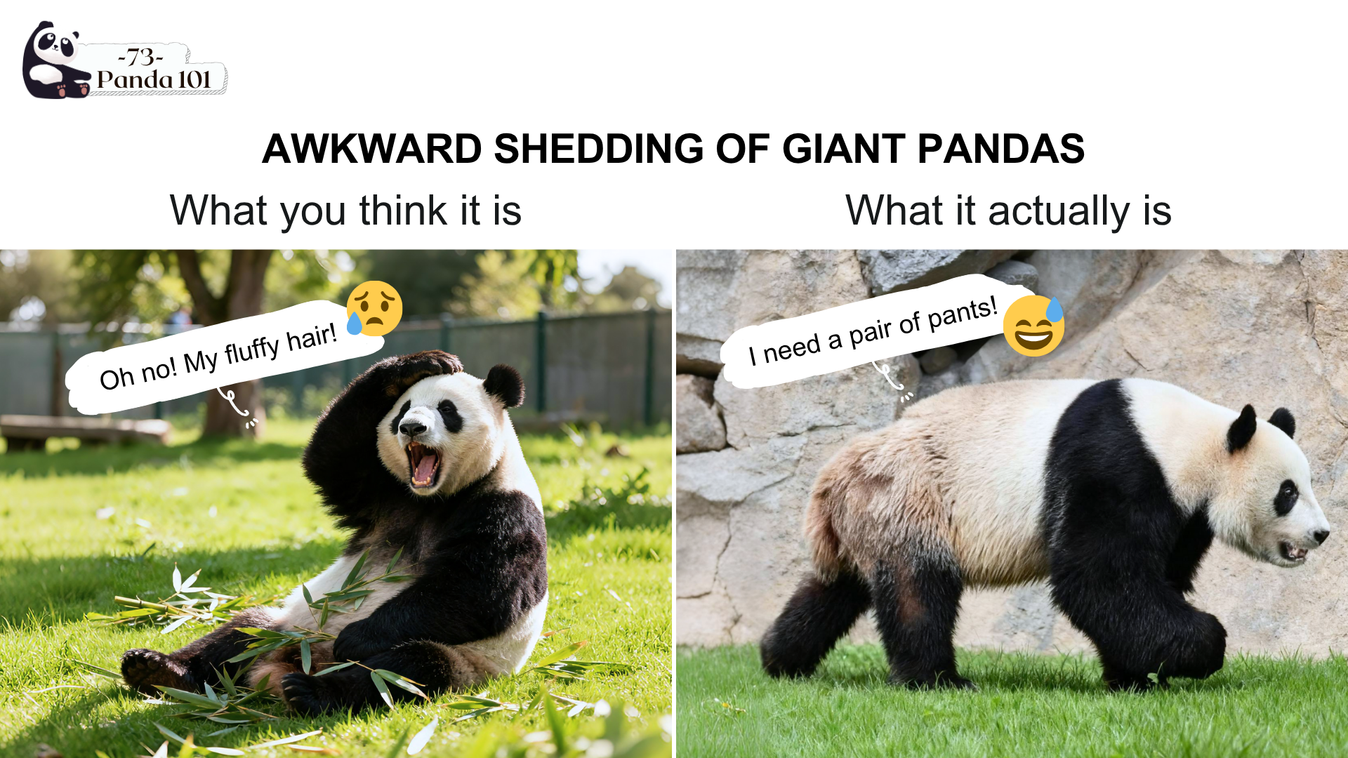 As winter sets in, some people may start to lose their hair. Surprisingly, giant pandas deal with "hair loss" as well! Though their situation is quite different from that of human beings…