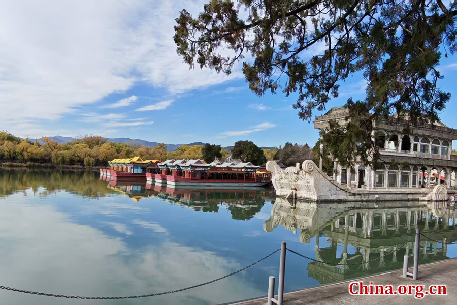 This photo taken on Nov. 10, 2025 shows the beautiful autumn scenery of the Summer Palace in Beijing. It is the largest and best-preserved royal garden across the country. Covering an area of 2.97 square kilometers, the park envelops Longevity Hill and Kunming Lake, with halls, towers, galleries, pavilions, bridges and islands scattered inside. It blends the garden style and architecture of southern China with northern China's natural landscapes. [Photo by Lin Liyao/China.org.cn]