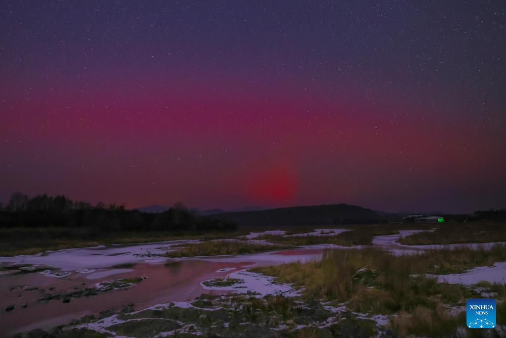 This photo taken on Nov. 12, 2025 shows the aurora seen in Yichun City, northeast China's Heilongjiang province. [Photo/Xinhua]