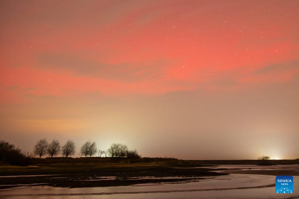 This photo taken on Nov. 12, 2025 shows the aurora seen in Shuangyashan City, northeast China's Heilongjiang province. [Photo/Xinhua]