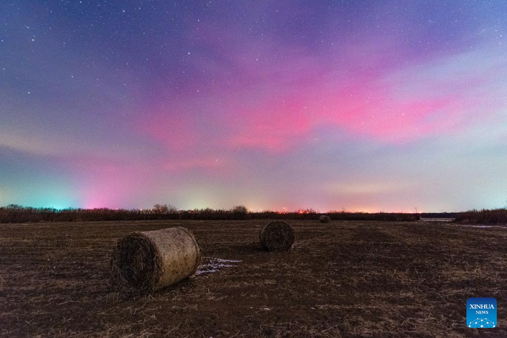 This photo taken on Nov. 12, 2025 shows the aurora seen in Fujin City, northeast China's Heilongjiang province. [Photo/Xinhua]
