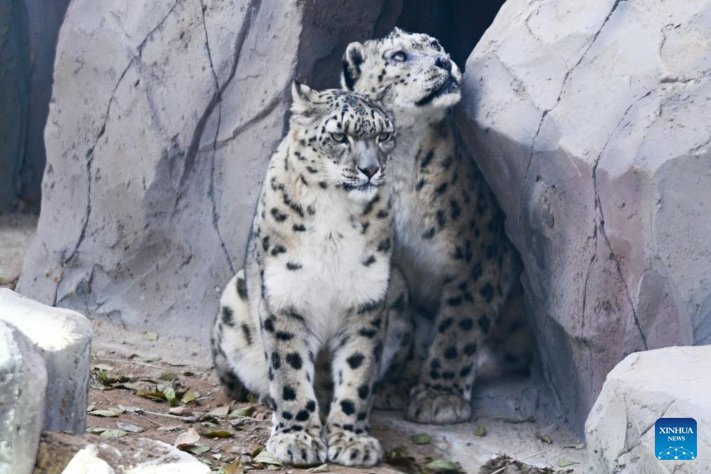 Snow leopards are seen at Xining Wildlife Park in northwest China's Qinghai Province, Nov. 15, 2025. The leopard house at Xining Wildlife Park reopened to the public after a month-long renovation. (Xinhua/Qi Zhiyue)