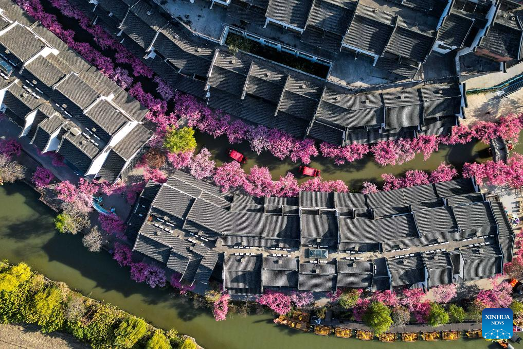An aerial drone photo taken on Dec. 9, 2025 shows a scenic spot in Changxing County, Huzhou, east China's Zhejiang Province. (Photo by Yi Fan/Xinhua)