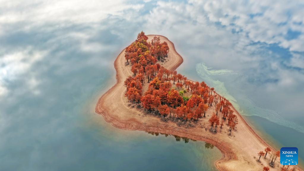 An aerial drone photo taken on Dec. 10, 2025 shows a view of a reservoir in Xianju County, Taizhou City, east China's Zhejiang Province. (Photo by Wang Huabin/Xinhua)