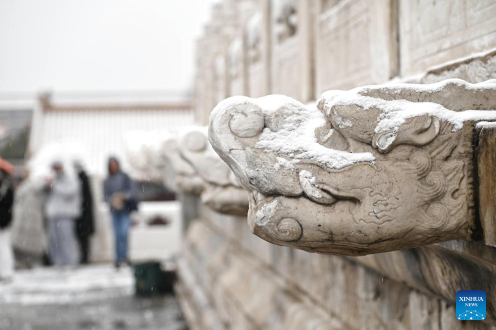 This photo taken on Dec. 12, 2025 shows a view of the Palace Museum amid snowfall in Beijing, capital of China. Beijing witnessed its first significant snowfall of this winter season on Friday. (Xinhua/Li Xin)