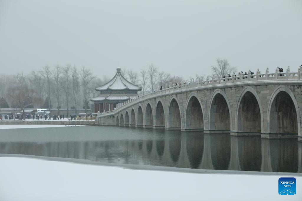 This photo taken on Dec. 12, 2025 shows a view of the Summer Palace amid snowfall in Beijing, capital of China. Beijing witnessed its first significant snowfall of this winter season on Friday. (Xinhua/Liu Zhihan)