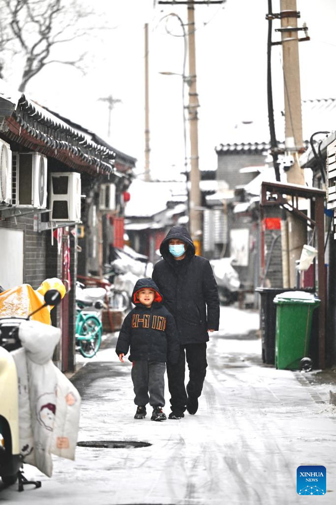 Pedestrians walk amid snowfall in Beijing, capital of China, Dec. 12, 2025. Beijing witnessed its first significant snowfall of this winter season on Friday. (Xinhua/Chen Yehua)