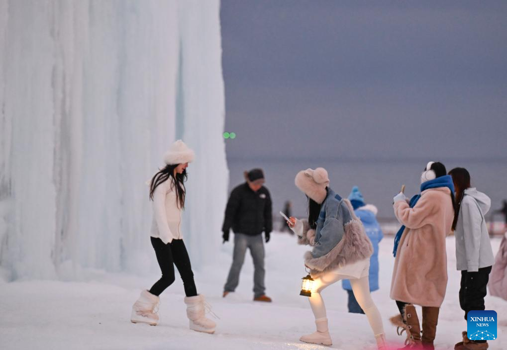 Tourists have fun by the Sayram Lake in Bortala Mongolian Autonomous Prefecture, northwest China's Xinjiang Uygur Autonomous Region, Dec. 15, 2025. (Xinhua/Wang Fei)