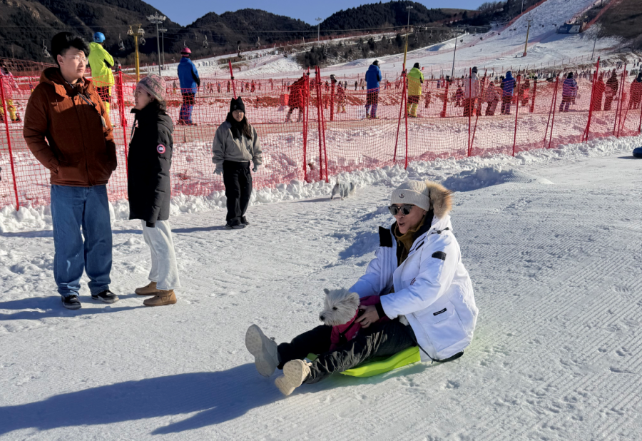 It also introduced the country's first pet-themed ice and snow park. Beside the beginner's slope at Beijing Yuyang International Ski Resort, a 20,000-square-meter pet-themed ice and snow park is now open, where many dogs can be seen running and playing in the snow, and even riding sleds and snow tubes with their owners.